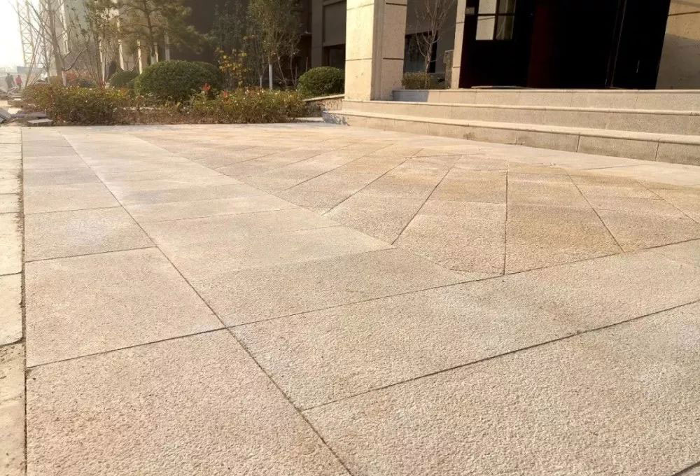 楼栋单元入户平台石材铺装实景拍摄(斜铺)